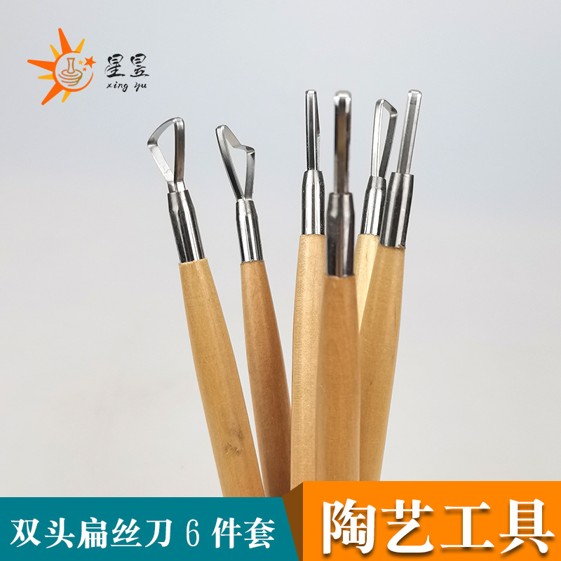陶芸道具6本セットダブルヘッド平糸刀学生手作りdiy泥塑陶泥油泥彫刻道具