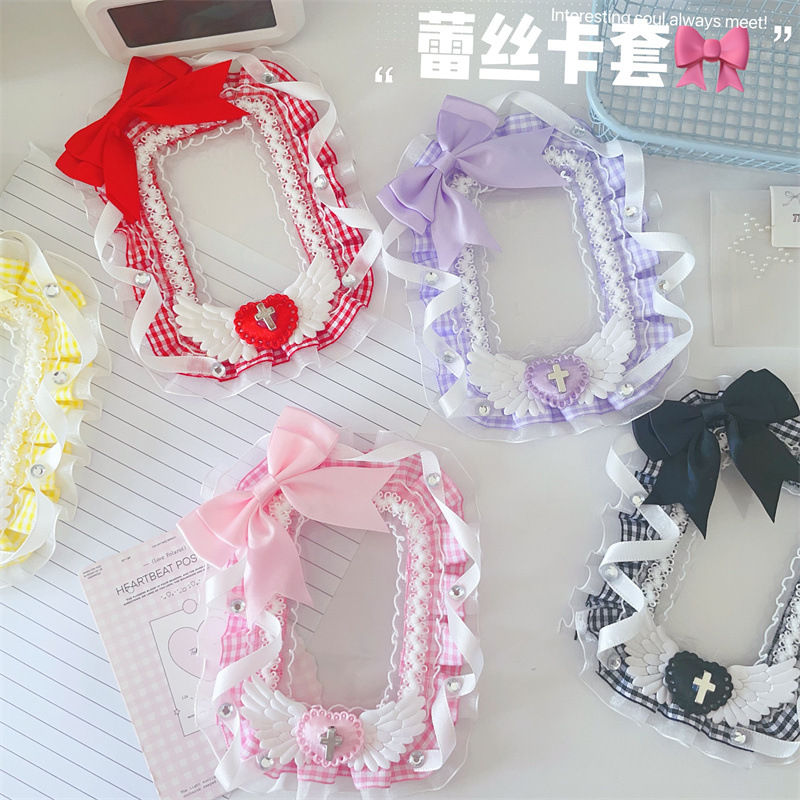 DIYかわいい少女の心の天使の翼カバーins風レースカードセット布芸小カードストラップ手作り完成品