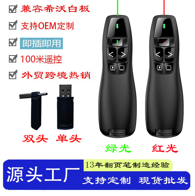 新しいPPTページめくりペンのダブルヘッド簡易報告器マルチメディア教育会議ペン充電可能な緑の爆発的なスクリーンペン