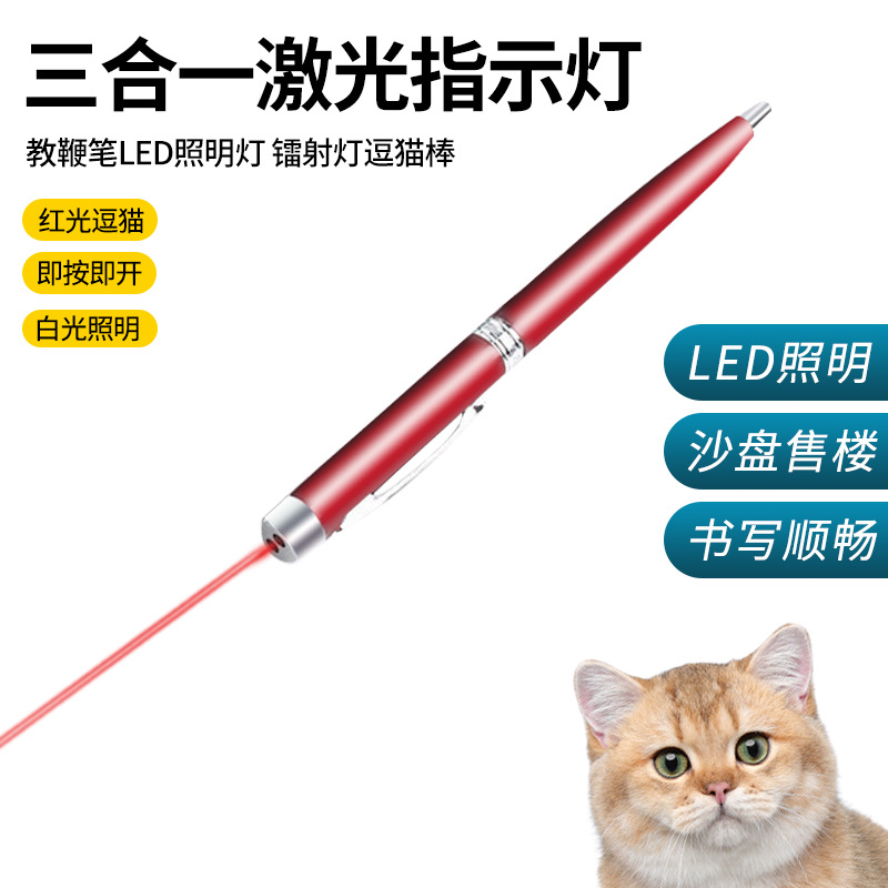 新型多機能オフィス教育ボールペン電池タイプの教鞭ペンLED猫レーザー照明ペン懐中電灯