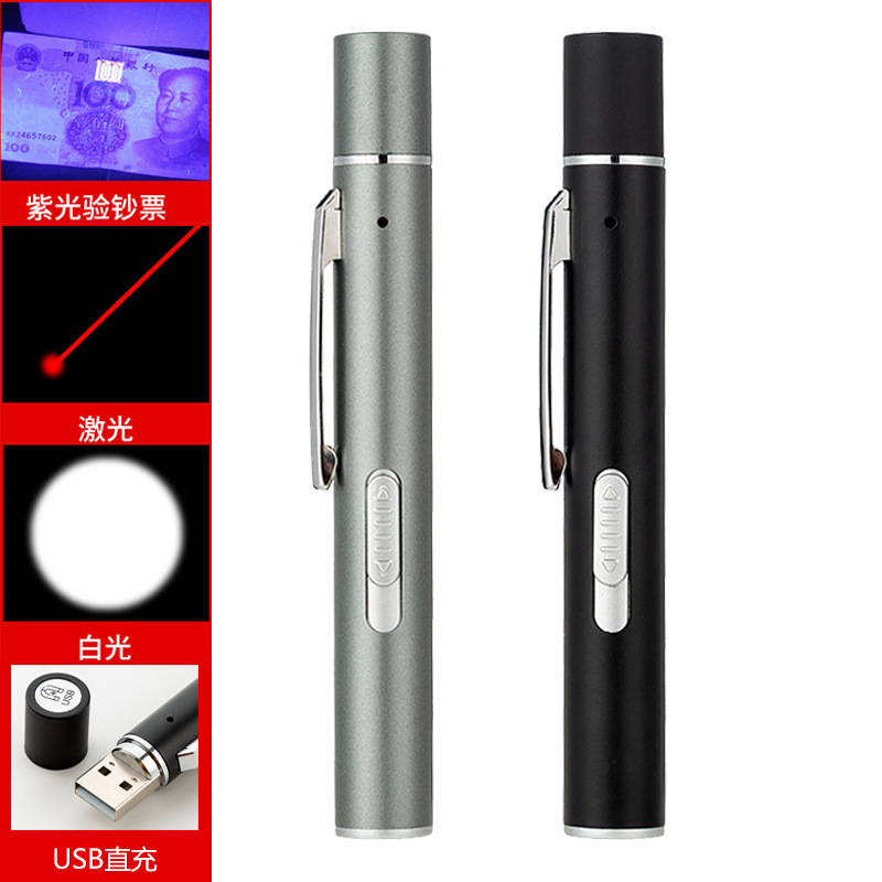 斉影紫単点レーザー懐中電灯黒銀外殻直売緑レーザー投影懐中電灯砂盤ペン
