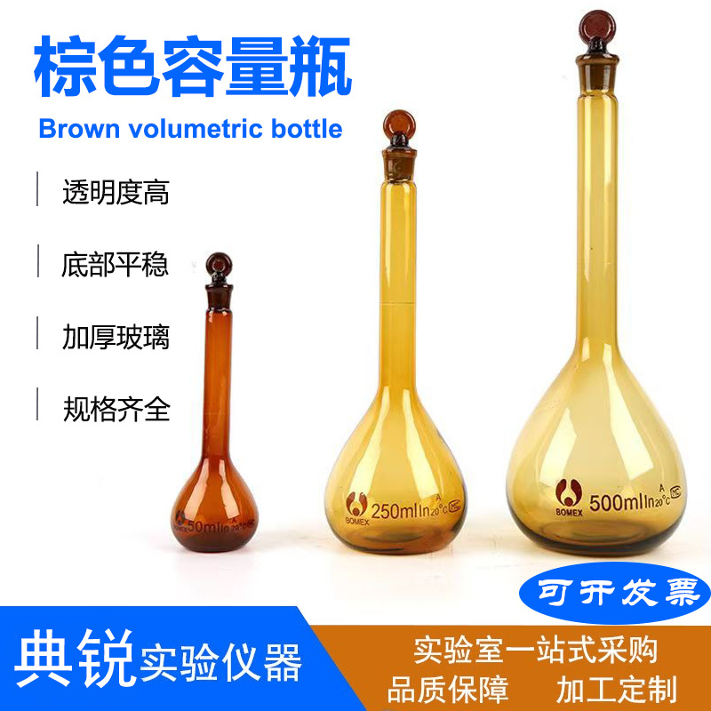 ガラス容量瓶 1ml2ml5ml10ml25ml50ml100ml250ml ブラウン 高ホウケイ酸 耐高温