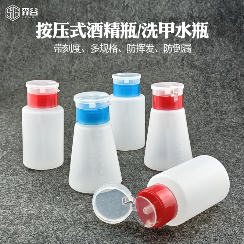 メーカー直販プッシュ式静電気防止アルコール瓶ネイルボトルアルミヘッドペットボトル4/6/8安士錐形瓶