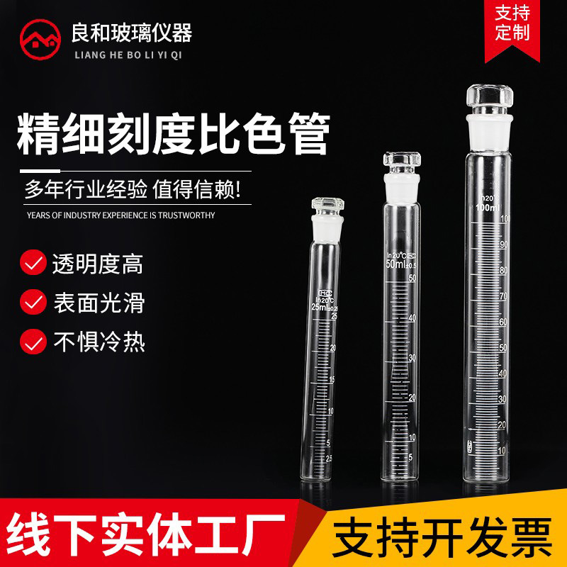 細かいスケールは、比色管10 25 50 100mlのプラグ付きGG-17材料高ホウ素シリコンガラス機器を備えています