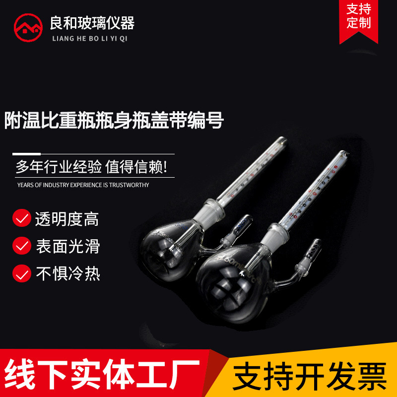 温度付き比重ボトル10/25/50/100mlガラス機器密度ボトル温度計付き階層実験室消耗品
