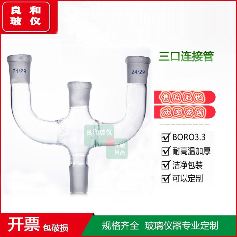 三口連接管14/19/24/29 # 蒸留管標準研口ガラス継手女子管高ホウ素シリコン
