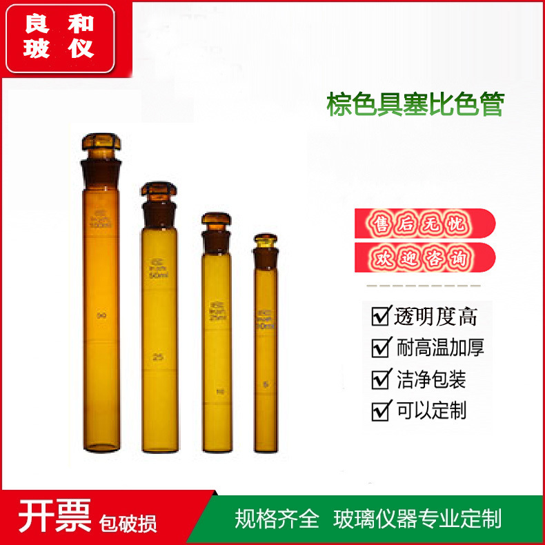 実験室のガラス器具の光を遮る茶色の栓比色管比色管5ml 10ml 25ml 50ml 100ml