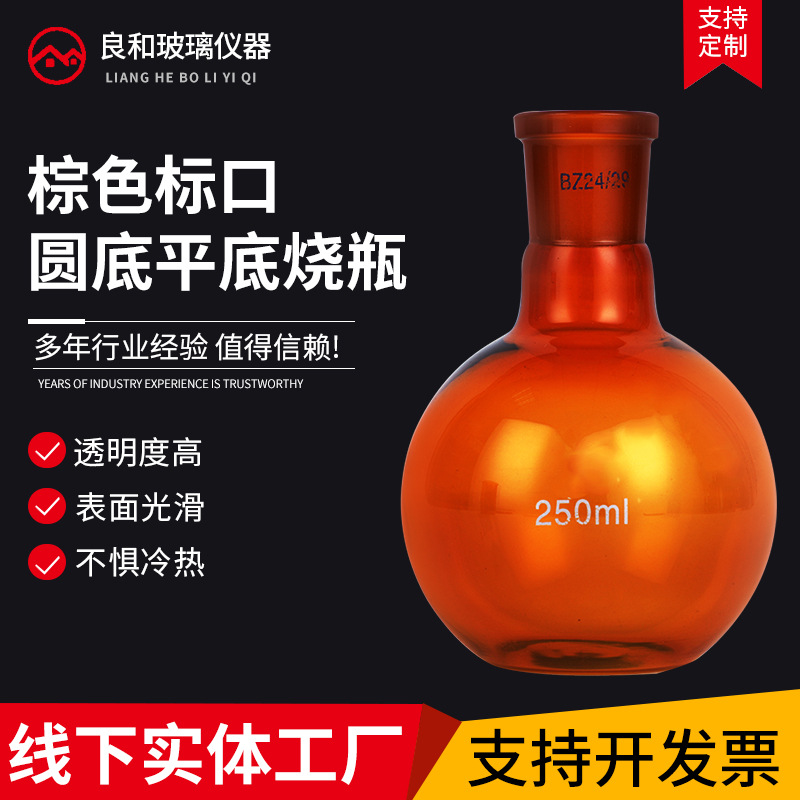 高ホウ素シリコン茶色丸底フラスコ50ml 100ml 150ml 250ml 500ml 1000ml