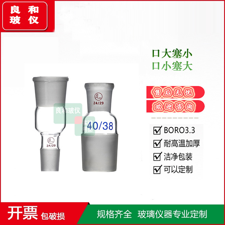 高ホウ素シリコンガラスの継ぎ手の変頭口の大きい栓の小さい口の小さい栓の大きい14 19 24 29 34 40 45 50