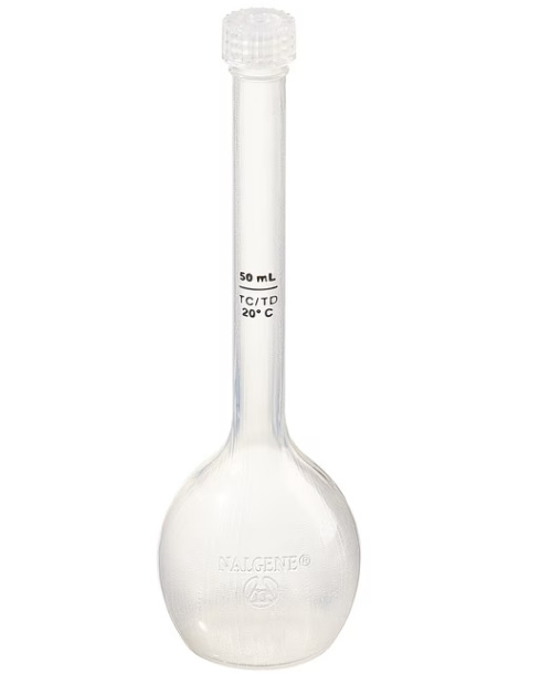サイマー飛nalgeneはb級ポリメチルペンテン (pmp) の容量瓶に螺旋蓋付きの目盛りがついています。