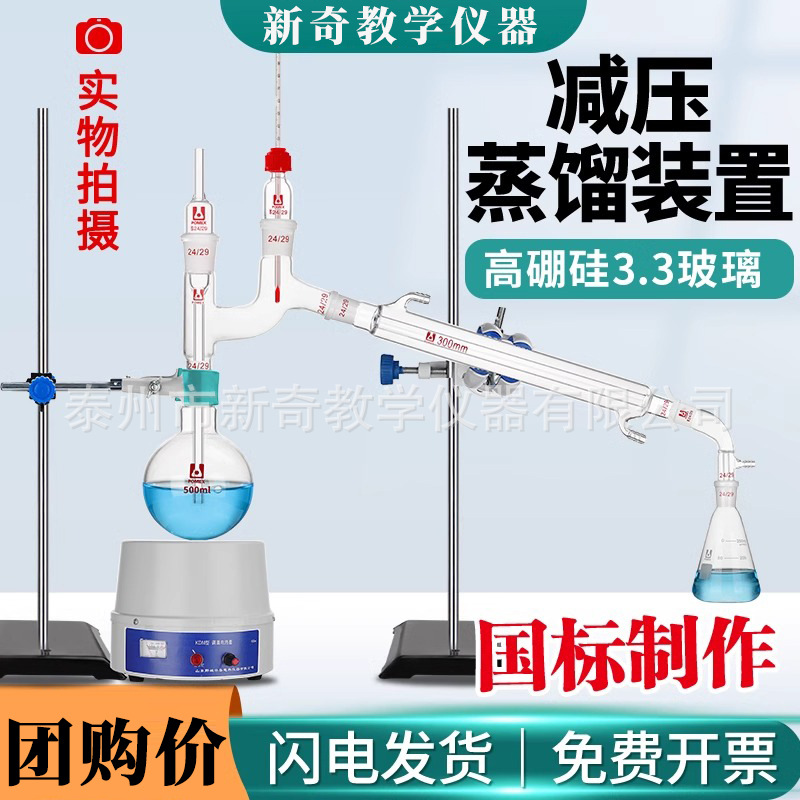 全ガラス平底電気加熱蒸留セット500ml精油蒸留抽出装置蒸留水精製精製精製