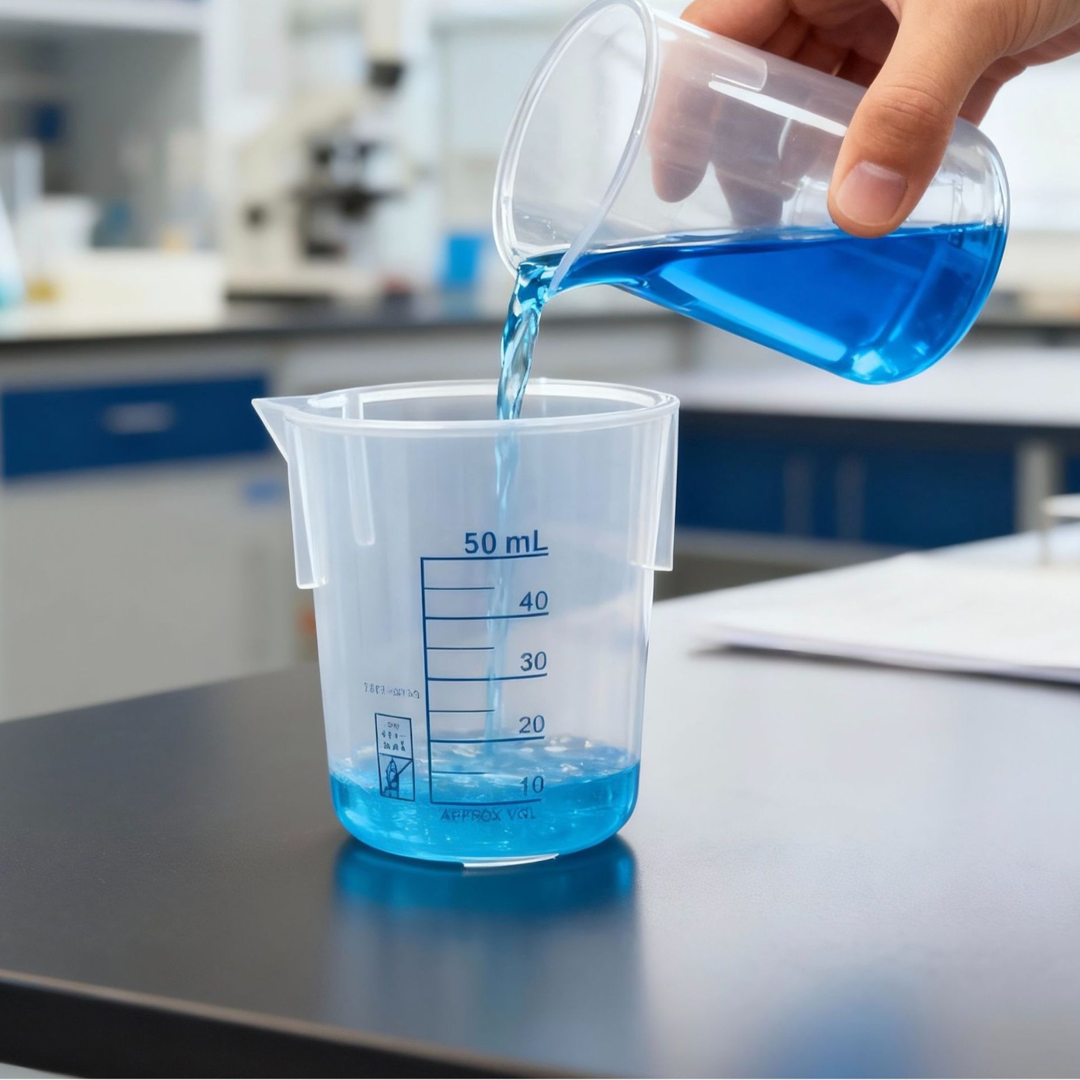 丸型ブルーラインスケールプラスチックビーカーハンドルレスサイドノズル大容量厚みのある黒ライン化学実験計量カップ