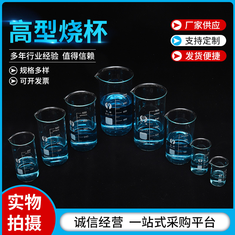 高型ビーカー厚ガラス25ml 50ml 100ml 250ml 500ml 1000ml実験器材