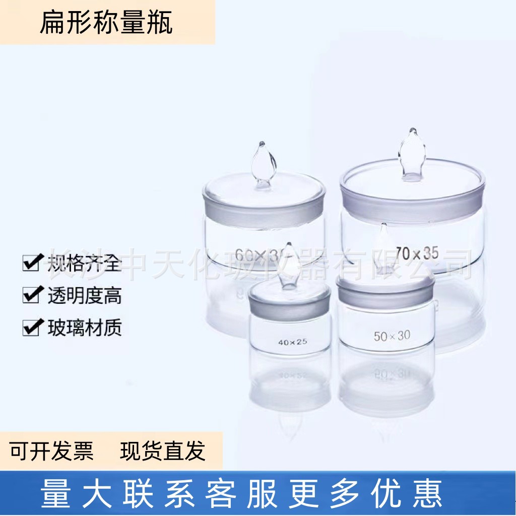 卸売り平型計量瓶40*25mm 50*30mm 60*30mm 70*35mm計量瓶ガラス器