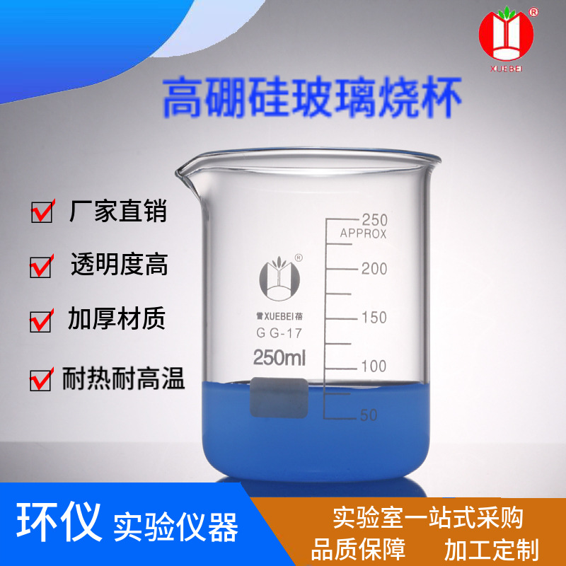 メーカー雪貝加厚ガラス低型ビーカー実験室用計量カップ高ホウケイ酸低型在庫卸売高温耐性
