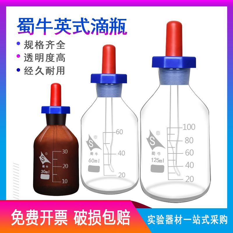 蜀牛透明茶色イギリス滴瓶ガラス滴瓶にゴムキャップ30 60 125mlがついている