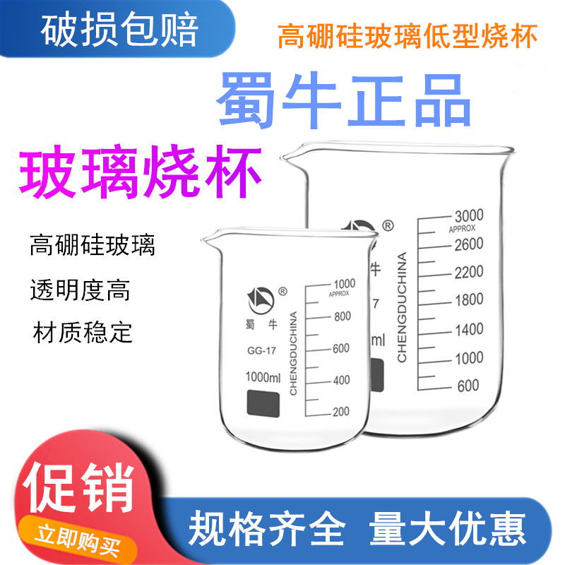 蜀牛ビーカーガラスビーカー低型ビーカー高ホウ素シリコンGG-17厚さ化学実験器材