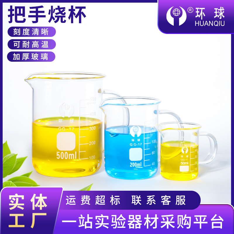 ハンドル付きガラスビーカー、厚みのある耐熱ガラスビーカー、ハンドル付きビーカー、実験用ビーカー卸売