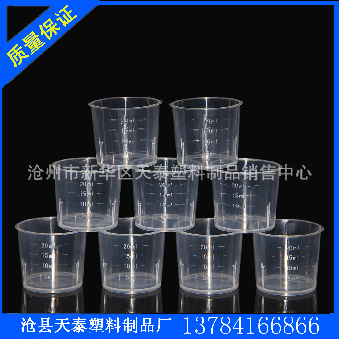 20mlプラスチック計量カップ、ビーカー、小型計量カップ、PP厚型透明実験用目盛り付き計量カップ、卸売販売中