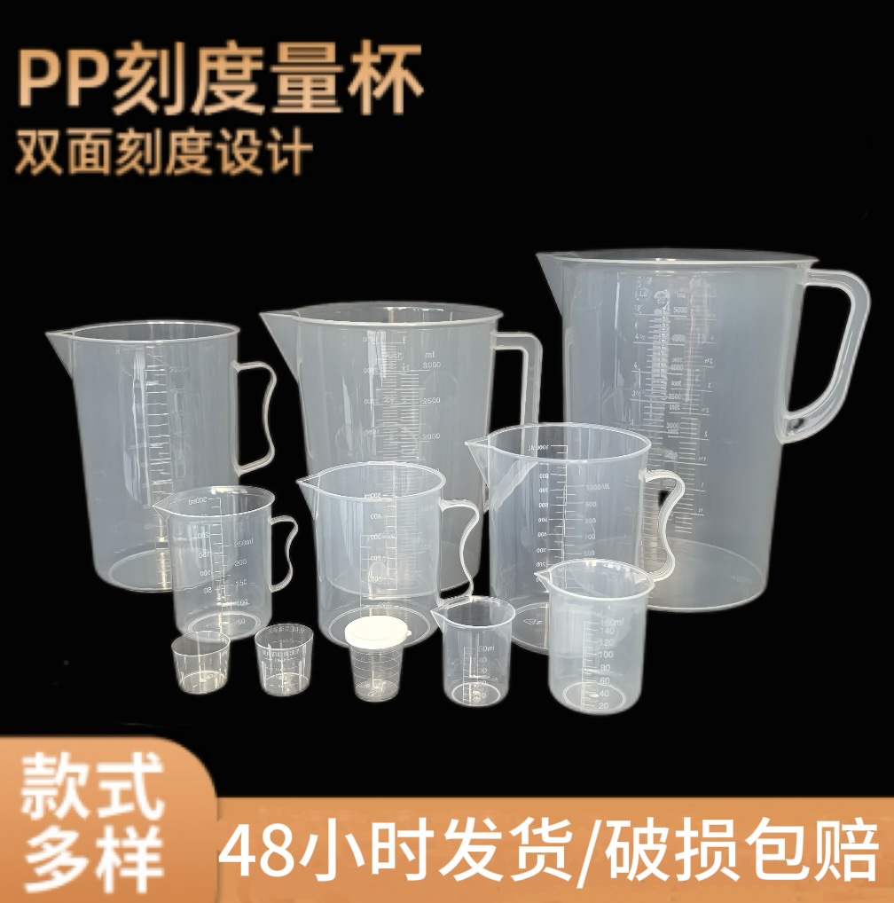 計量カップ プラスチックビーカー 透明両面目盛り付きカップ 厚型実験用PP計量カップ 小型ビーカー 定量筒 卸売