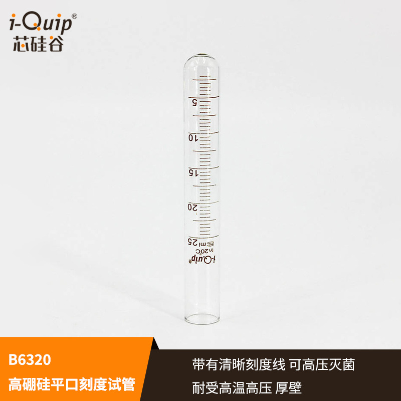 コアシリコンバレーb6320高ホウ素シリコン平口スケール試験管、丸底、5ml ~ 100ml