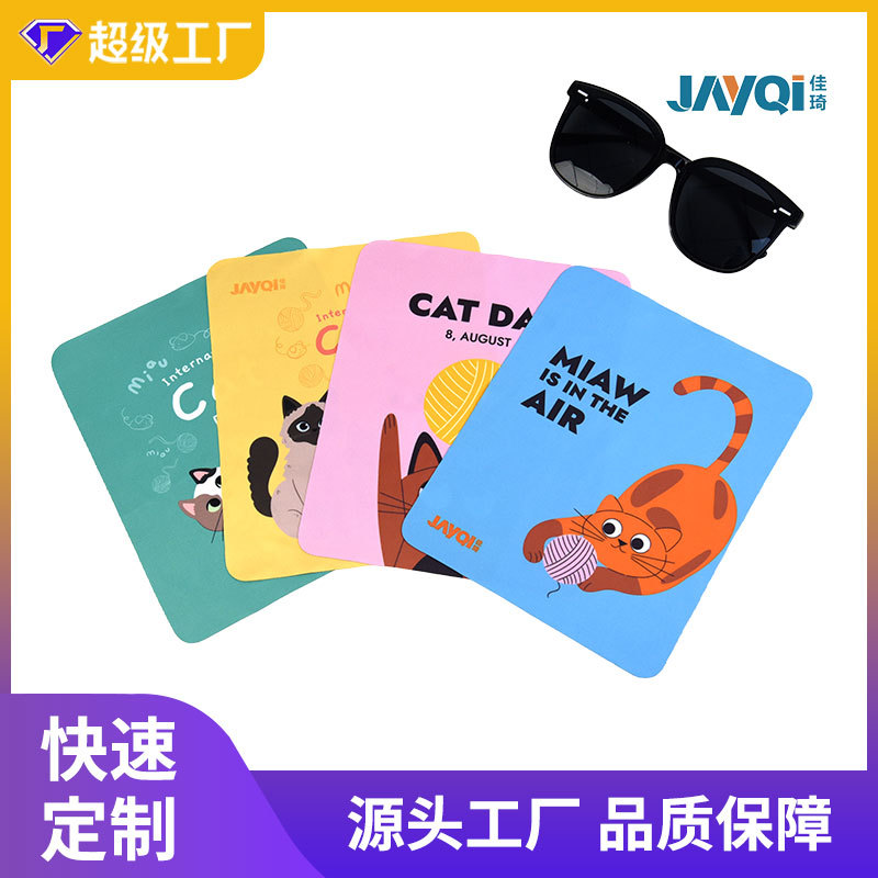 強力な工場卸売マイクロファイバーマルチカラー猫絵メガネクロスカスタムメガネ特別なワイプアイクロス