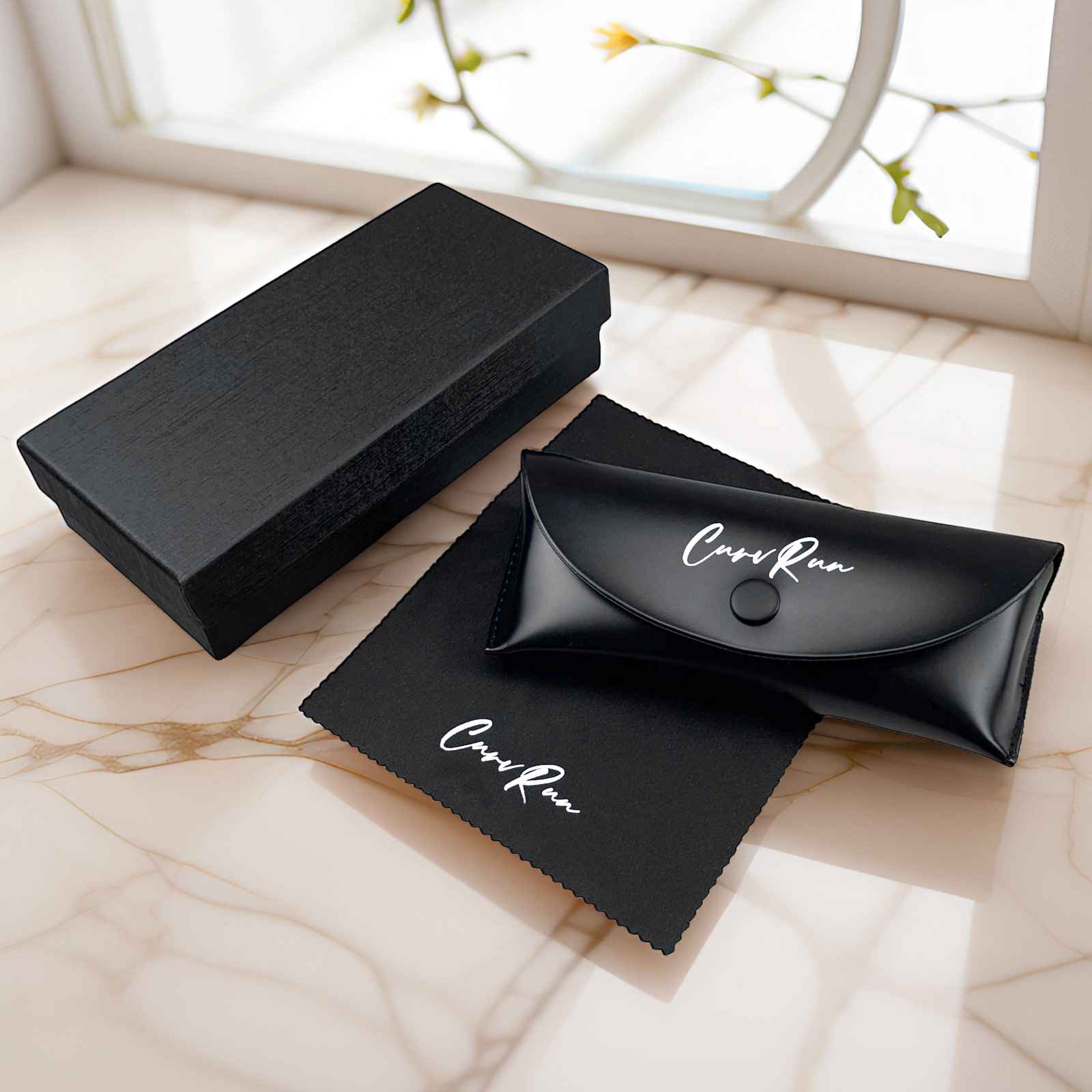 高級感のある革製のギフト用折りたたみ収納メガネケース(代発送対応)