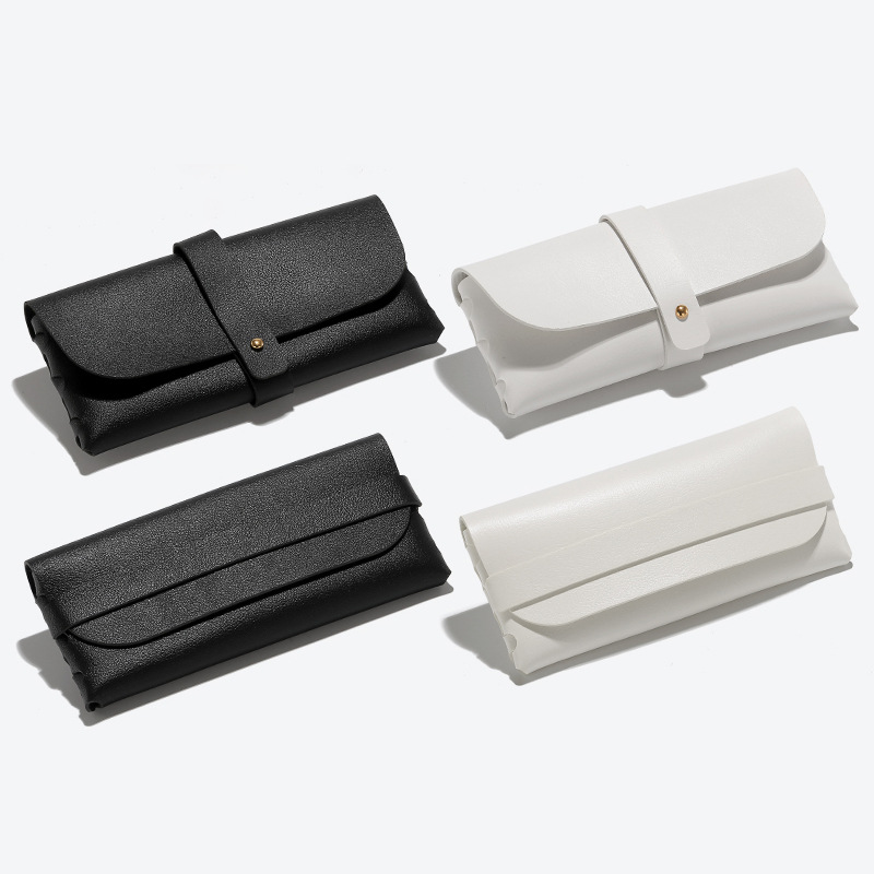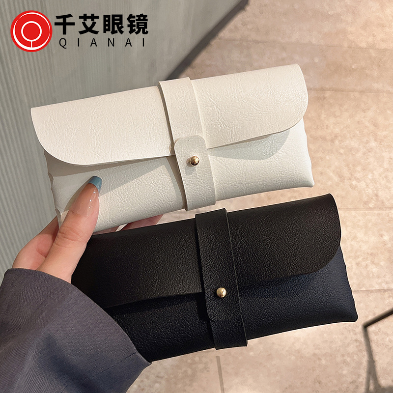 Pvcボタン付き革製メガネケース新型屋外シンプル携帯収納ケース柔らかい手作りサングラスソフトバッグ