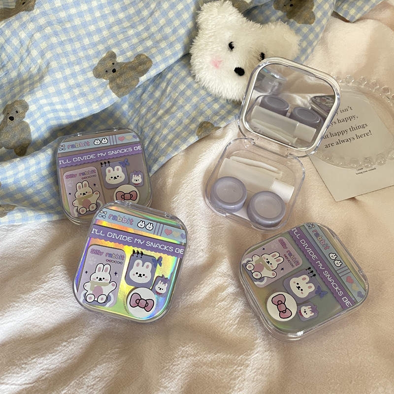 Ins萌熊兎シンプル携帯コンタクトレンズケースパートナーケア美瞳ケース収納ケースレーザーas789