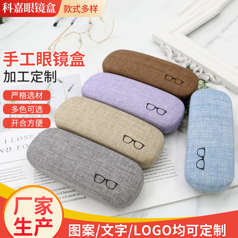 在庫ありの新しい光学耐圧メガネケースマルチカラーリネン鉄箱メガネとサングラスの収納プリントロゴボックス