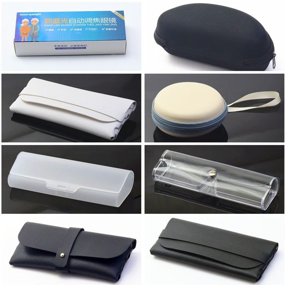 さまざまなメガネケース、EVAジッパーケース、折りたたみバッグ、メガネレザーケース、つや消し透明ケース、ズーム老眼紙箱が在庫あり