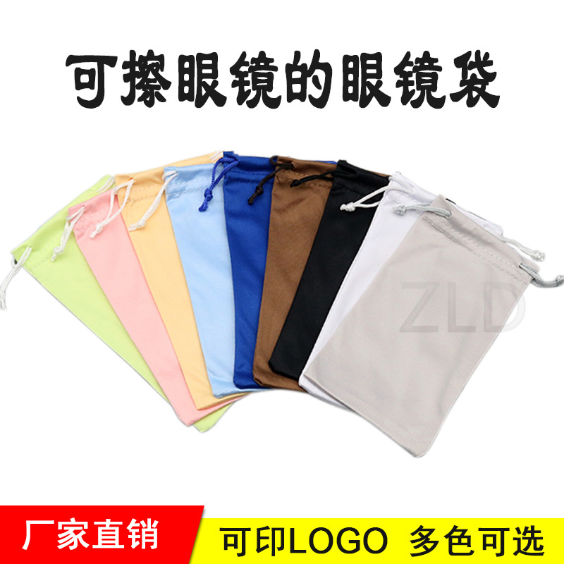 現物卸売り極細繊維純色メガネ袋携帯アクセサリー紐引き収納袋サングラス収納袋