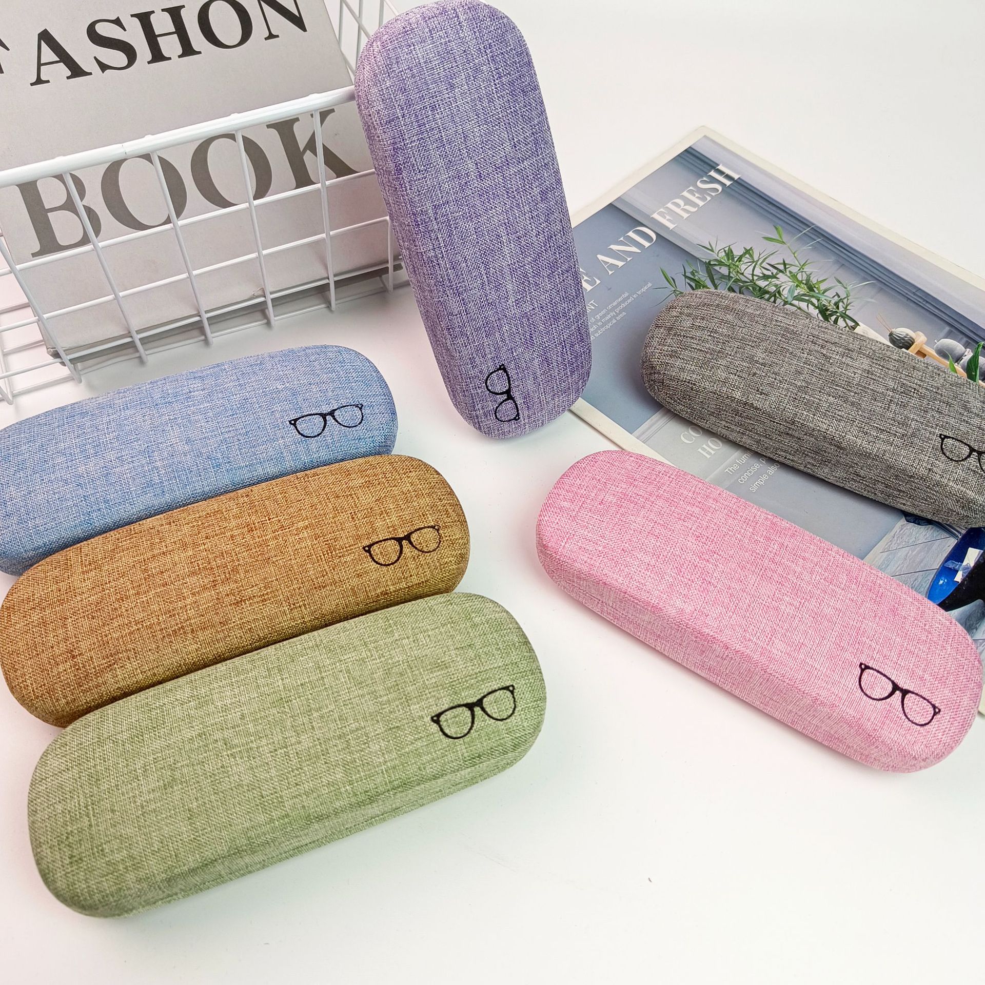メーカー卸売りメガネケース鉄皮バッグリネン布復古シンプル学生近視鏡光学鏡ケースはロゴを印刷できる