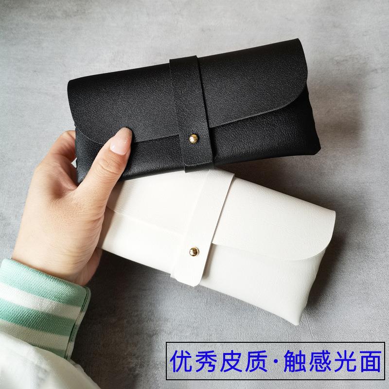 黒白色pvc革質感メガネケース携帯サングラスボタンメガネバッグサングラスソフトバッグメガネ袋卸売り