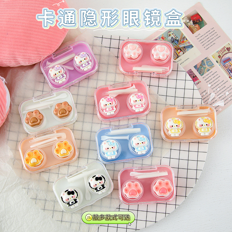 高級ポータブルコンタクトレンズボックス、装着ツールセット、かわいい猫の爪、コンパクトなツイストフリーカバー、コンタクトレンズボックス