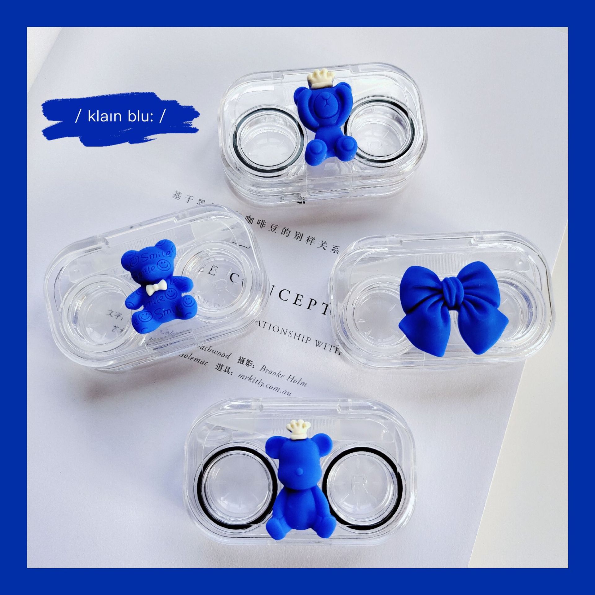 コンタクトレンズケース鏡面銀色蝶ネクタイ熊凱達メッキ美瞳カップルケースかわいい看護ダブル卸売り