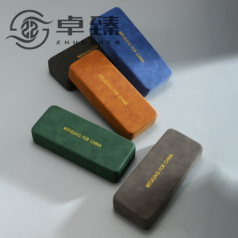 女の子用メガネケース、ポータブル、シンプルなレザー、耐圧、レトロ近視アイボックス、サングラスケース、男の子用、ロゴ印刷可能