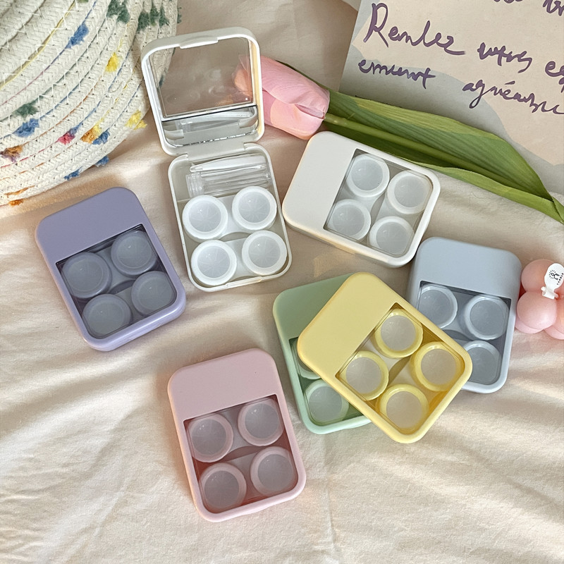 高颜値美瞳ケース鏡付きクリーム色シンプル携帯コンタクトレンズケース卸売りカップルケース看護ケース