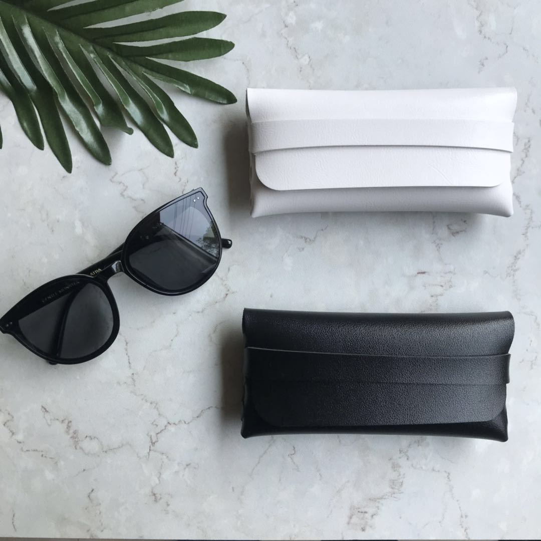 革の携帯鏡の箱の財布式の小型で丈夫なメガネの箱の軽いサングラスの箱の黒色の白い種類の現物の卸売り
