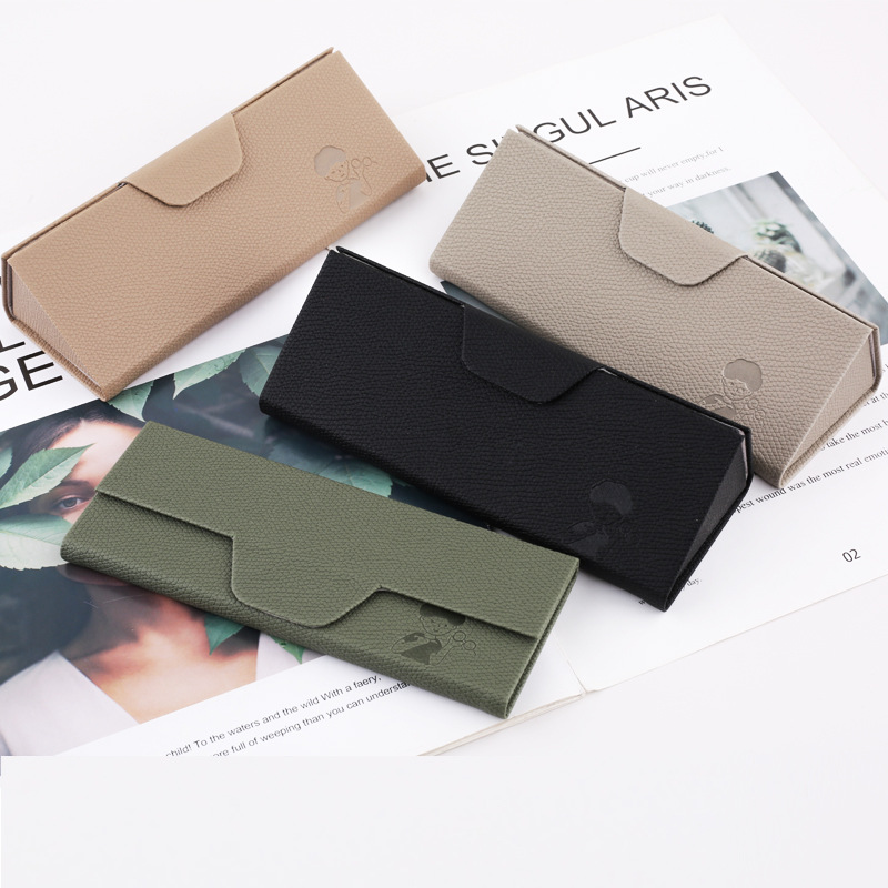 折りたたみ式三角形メガネケース、手作り財布、ロゴ印刷可能、ポータブル、大型フレームメガネ、サングラスケース、収納、携帯用収納