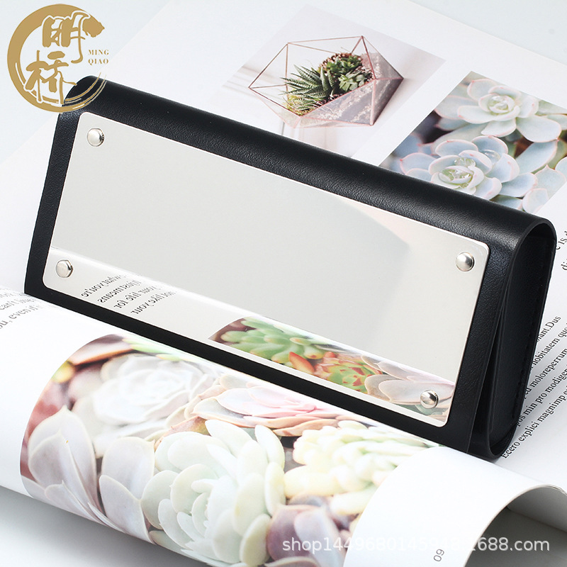欧米の人気メガネケース財布式鏡ケース黒色ファッション大気純手作りメガネケース現物卸売り