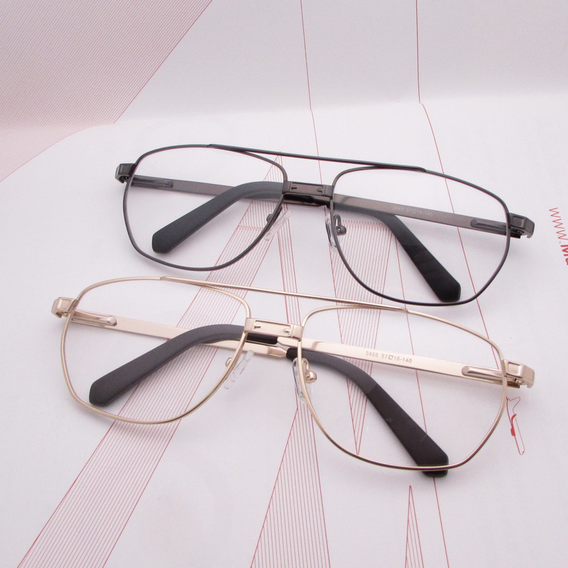 古典的な新しいメンズビジネスフラットミラーパーソナライズされたダブルビーム金属スリングショットレトロメガネフレーム工場在庫卸売