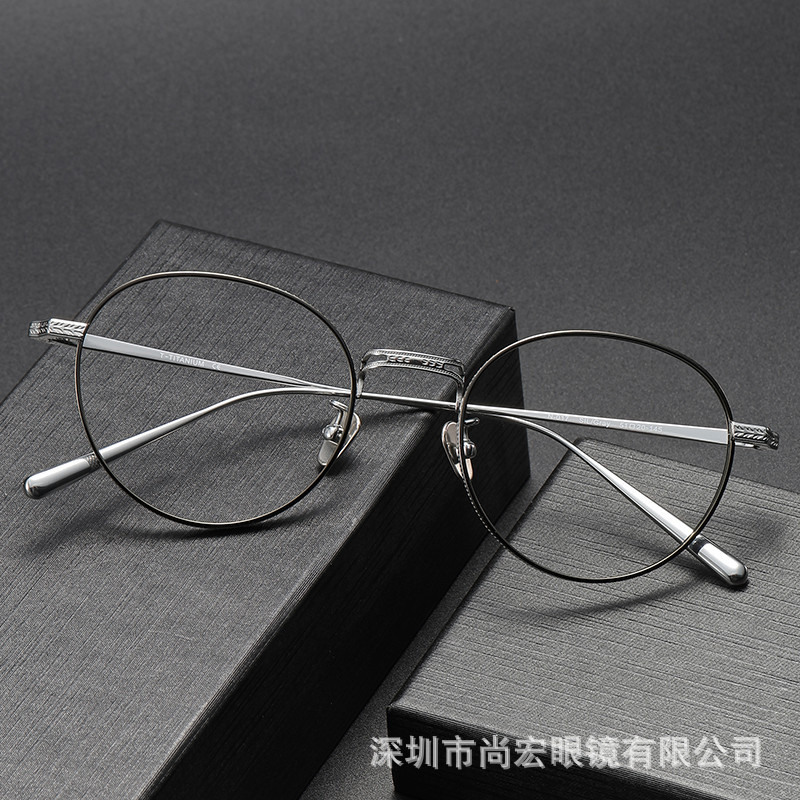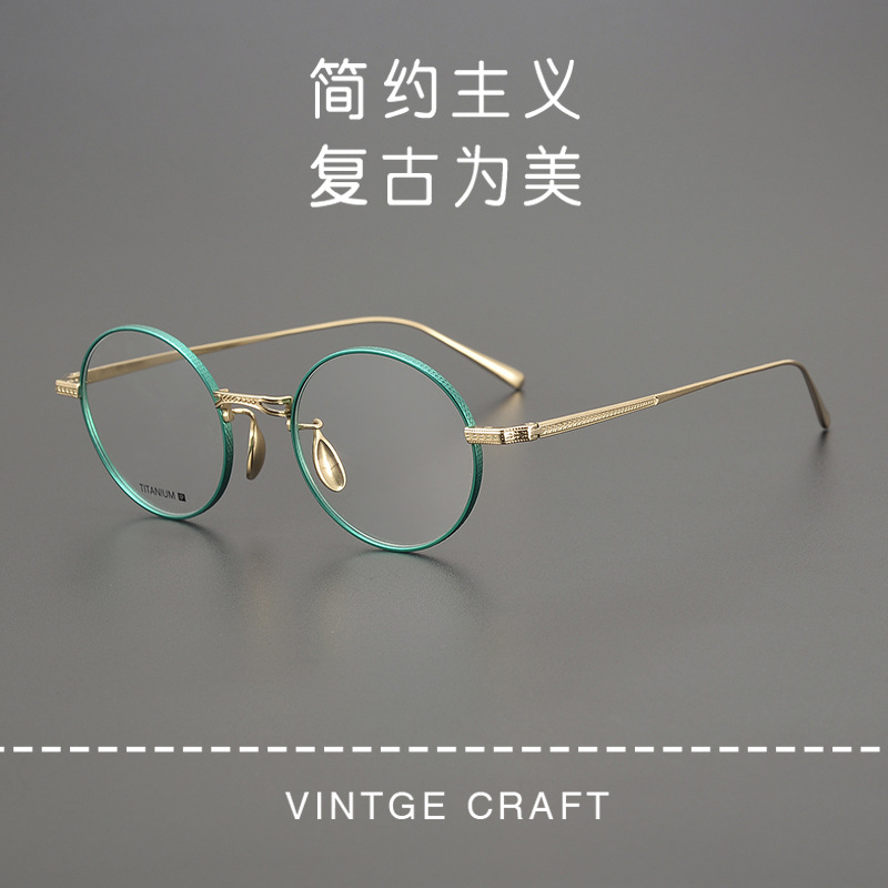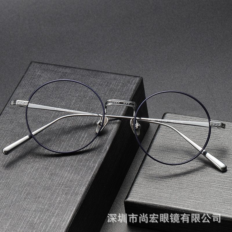 純チタンレトロ丸枠メガネ女性近視可度数防止ブルーライトメガネ枠男内藤熊八作N-026