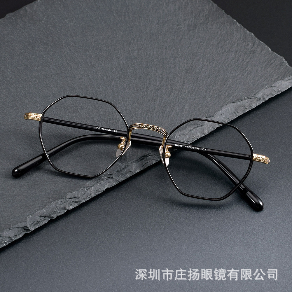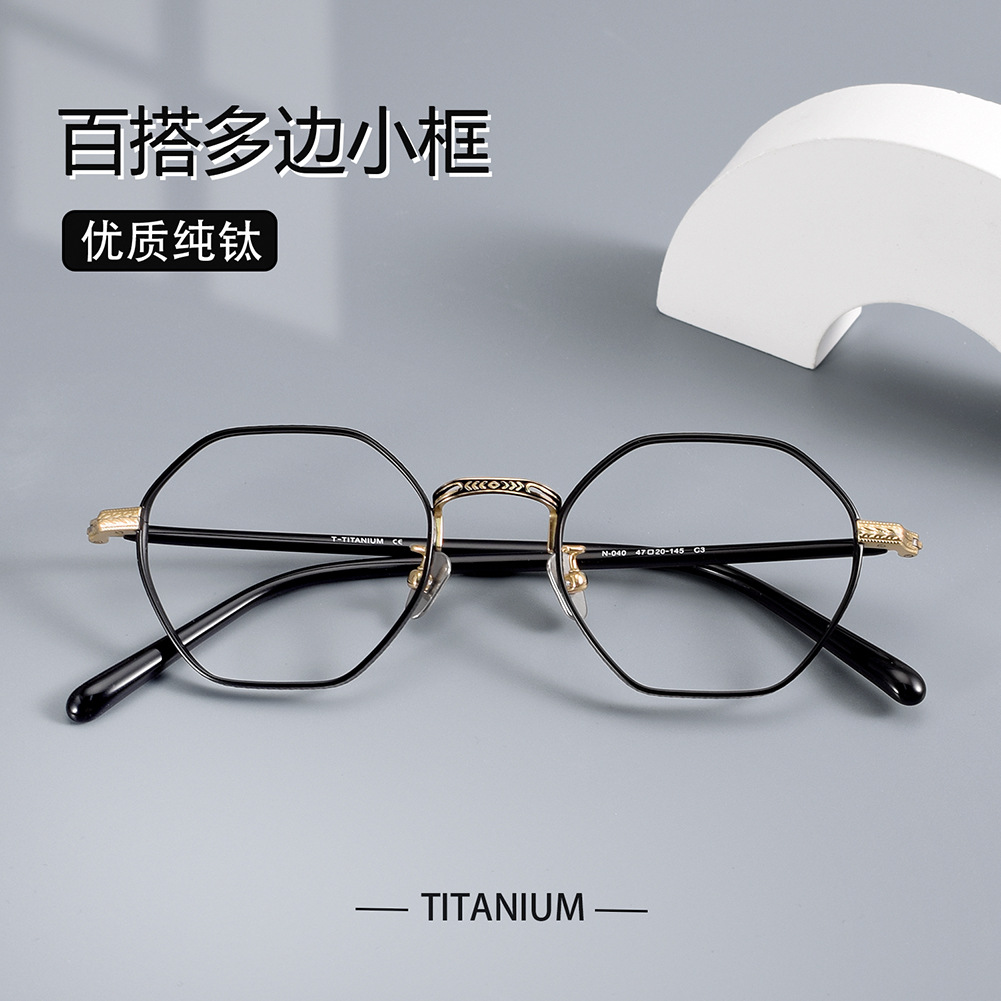 新品純チタン多角形小枠メガネフレームN-040内藤熊八同型幅高さ数メガネフレーム