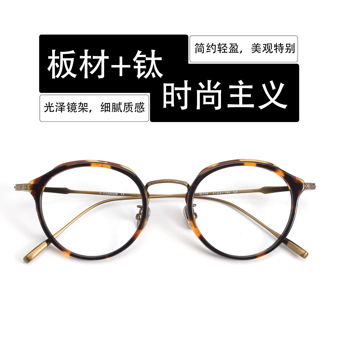 内藤熊八同モデルN-027楕円全フレーム眼鏡フレーム日系復古彫刻IP二色純チタン眼鏡フレーム