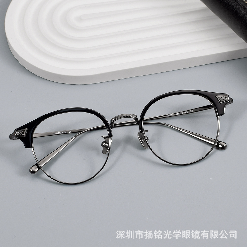 内藤熊八n050純チタン円形眉線メガネフレームファッションレトロアンチブルーレイ平近視メガネフレーム