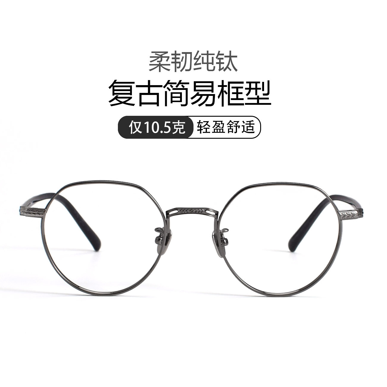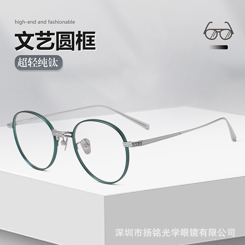 内藤熊八n050純チタン円形眉線メガネフレームファッションレトロアンチブルーレイ平近視メガネフレーム