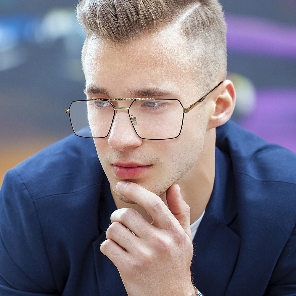 メンズビジネスカジュアルスチールレザーメガネフレームメタルスリングショットフット抗青色光大型フレームは近視メガネフレームと組み合わせることができます在庫あり