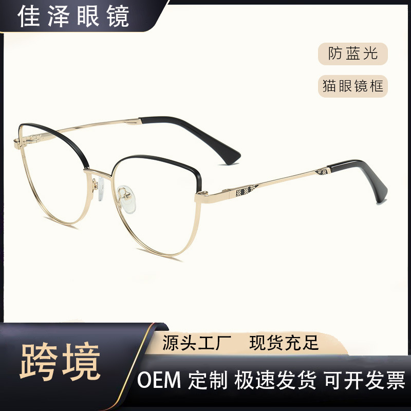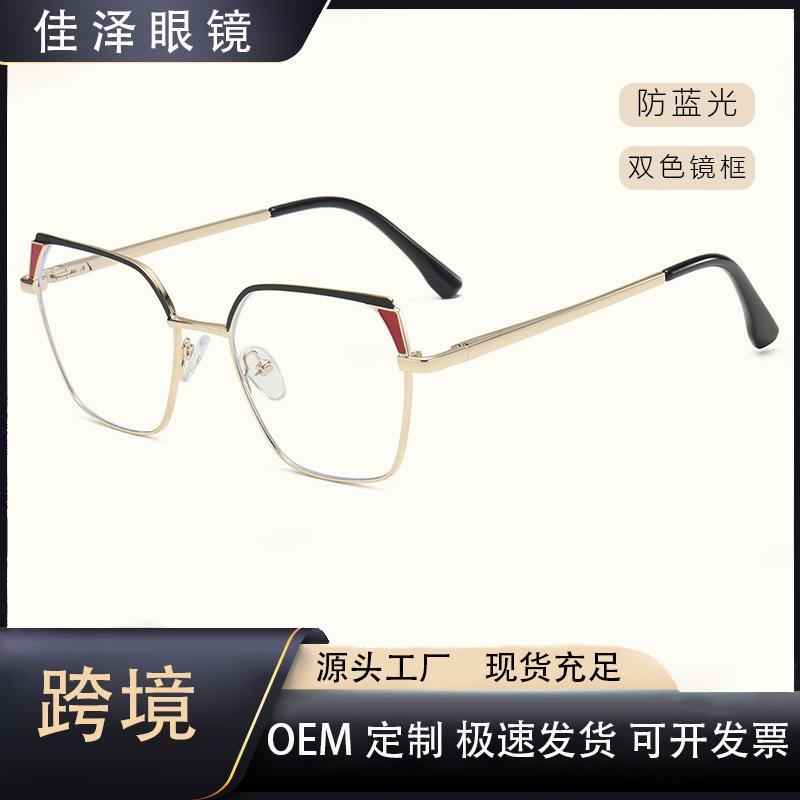 2025 新ヨーロッパとアメリカのクロスボーダーメタルラージフレームメガネ CP ピンスリングショット脚抗青色光女性のフラットメガネフレーム