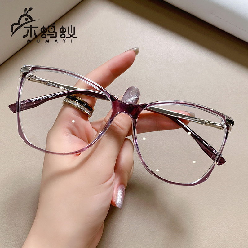 クロスボーダー新型欧米ファッションメガネフレームTR90ブルーレイ防止メガネレディースパチンコトレンドins風フラットミラー